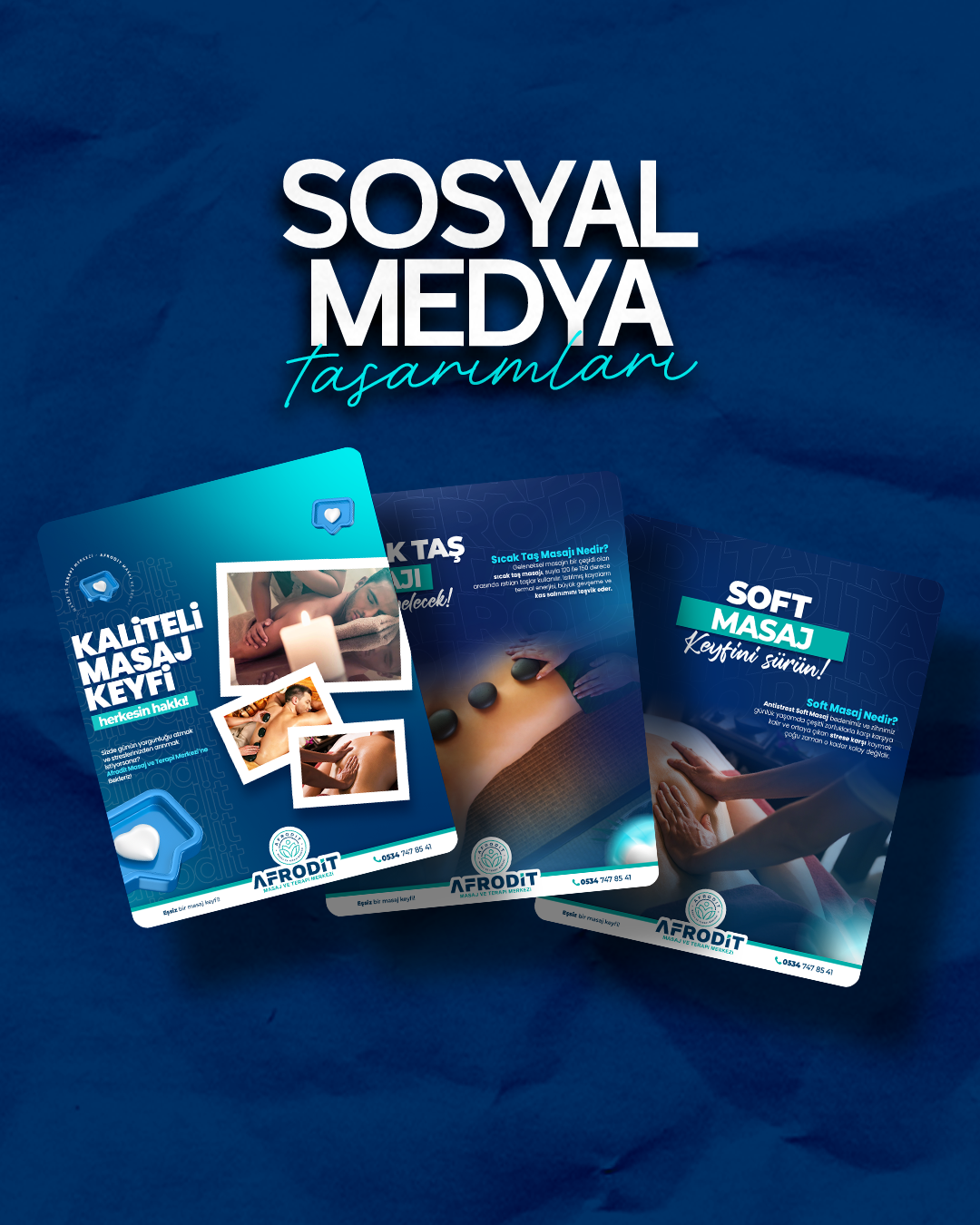 Afrodit Masaj ve Terapi Merkezi için sade, estetik ve etkileyici sosyal medya tasarımları oluşturduk. Hizmetlerinizi en doğru şekilde yansıtan içeriklerle dijital dünyada da huzur ve güven ön planda!