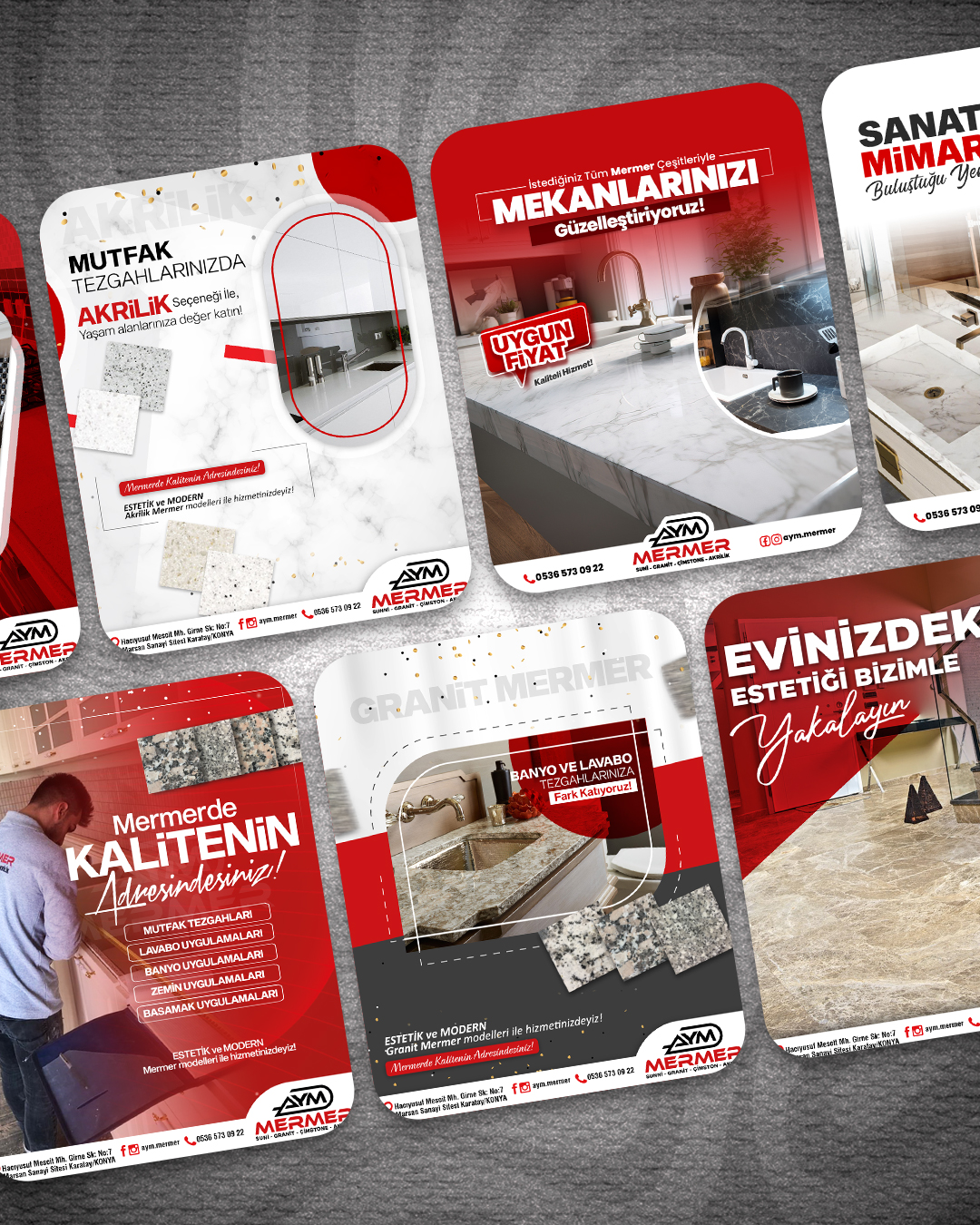 AYM Mermer için güçlü ve estetik bir sosyal medya kimliği oluşturduk. Özgün tasarımlar ve etkili içeriklerle markanın dijitalde daha görünür ve prestijli olmasını sağlıyoruz! 🚀