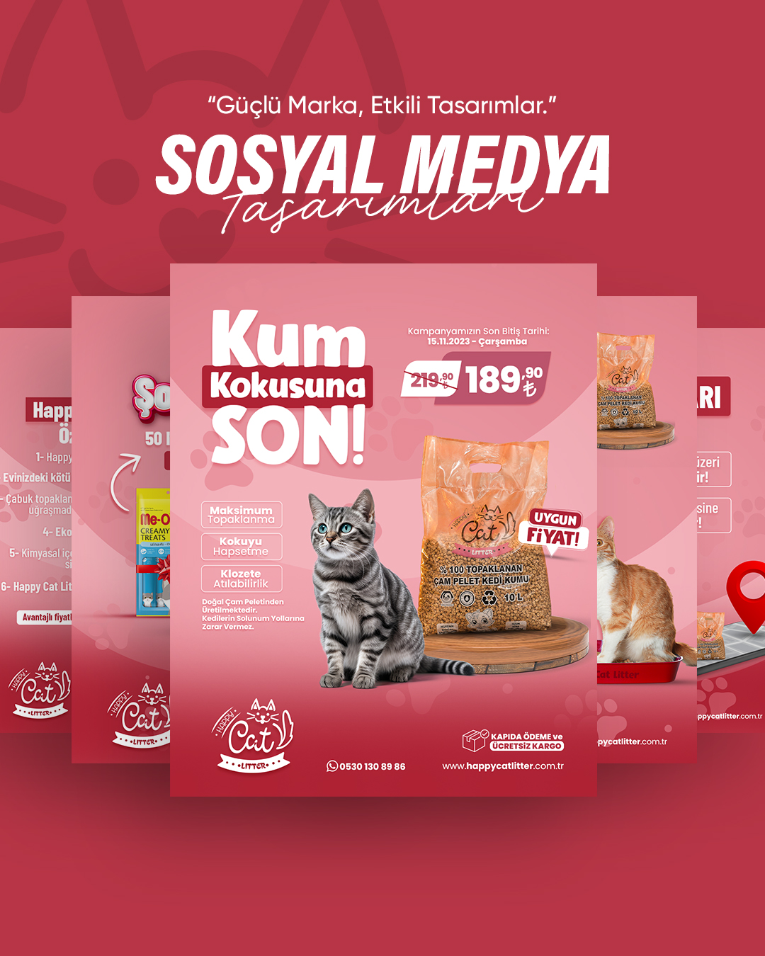 Happy Cat Litter için hazırladığımız tasarımlarda da markanın enerjisini dijitale yansıttık. 🚀