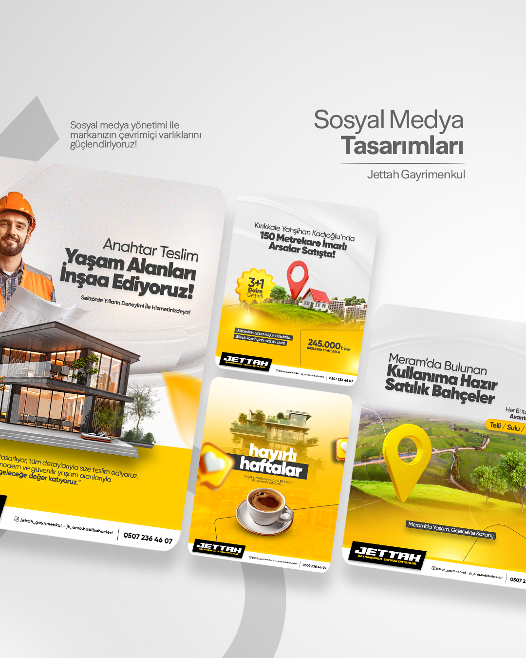 Jettah Gayrimenkul için hazırladığımız sosyal medya tasarımlarıyla, markanın güvenilir duruşunu dijital dünyada yansıttık.