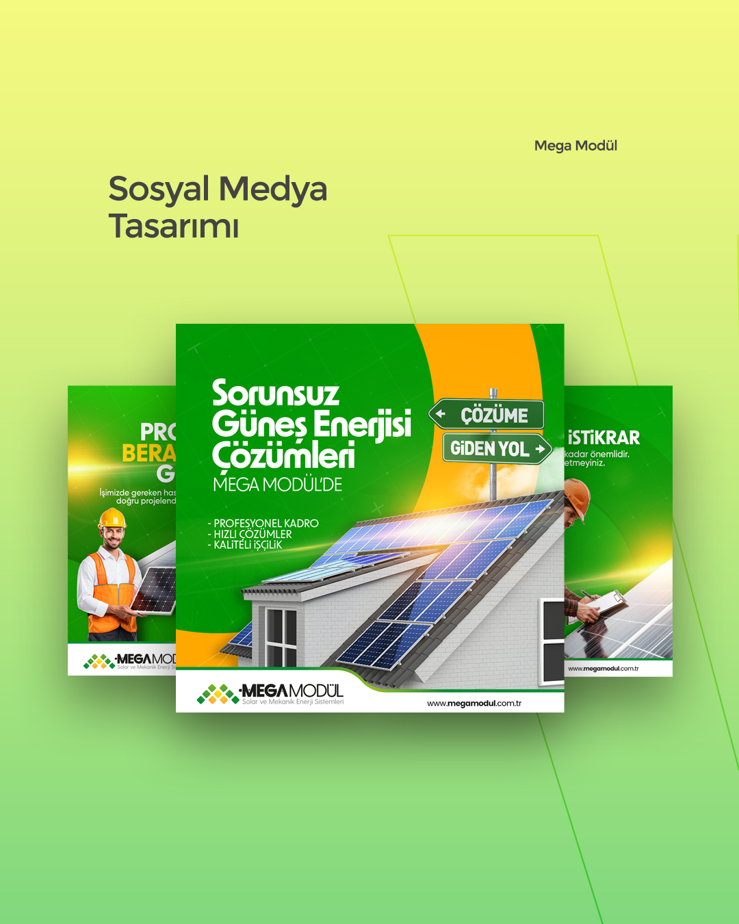 Vox Medya olarak Mega Modül için hazırladığımız sosyal medya tasarımlarıyla, güneş enerjisinin gücünü dijitale yansıttık.