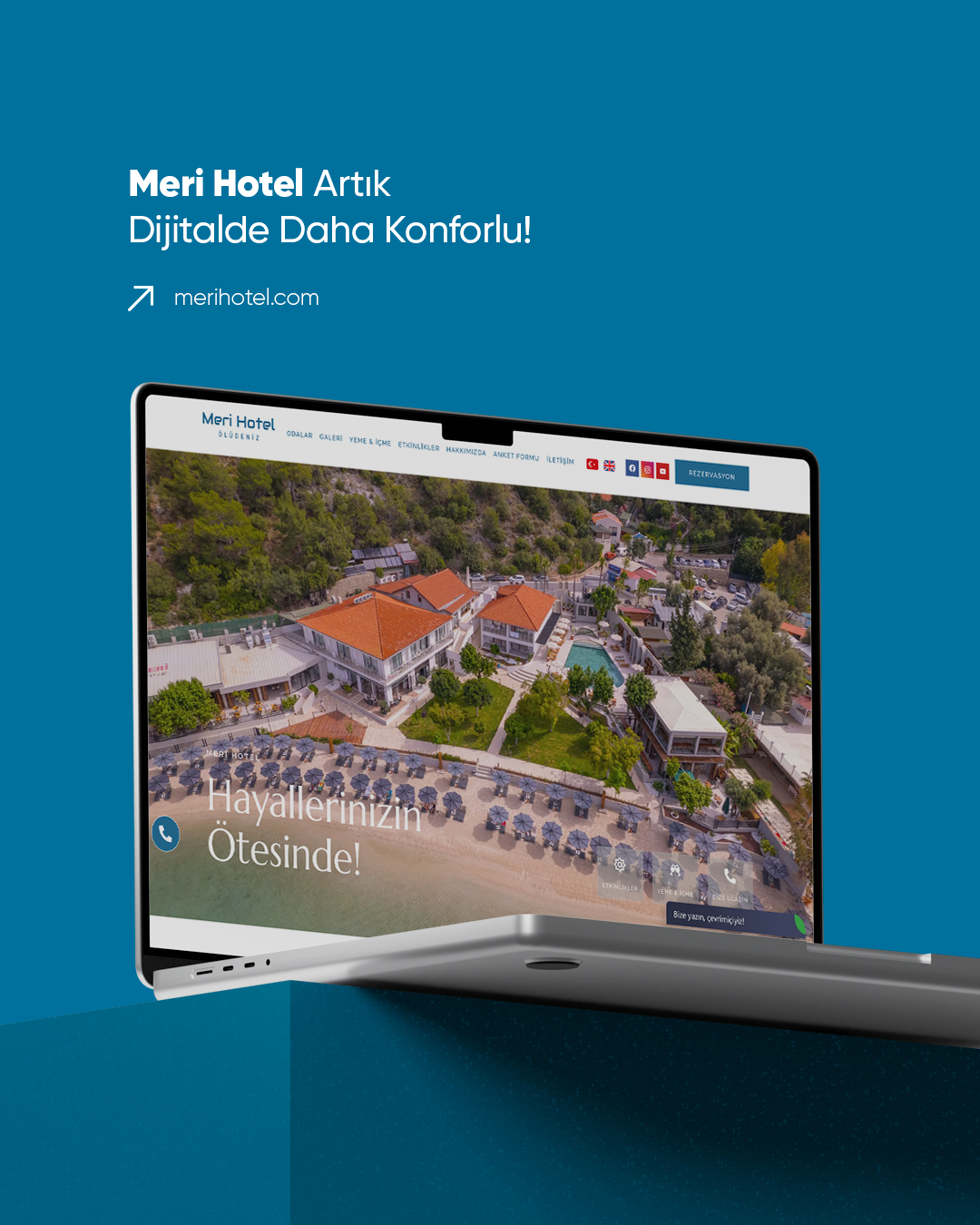 Meri Hotel için modern, kullanıcı dostu ve mobil uyumlu bir web tasarımıyla konaklama deneyimini dijitalde de konforlu hale getirdik.