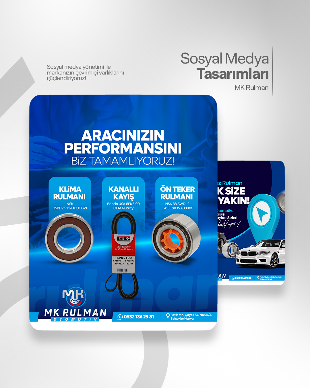 MK Rulman’ın otomotiv sektöründeki güçlü ürün gamını daha etkili anlatmak için hazırladığımız sosyal medya tasarımları yayında!
